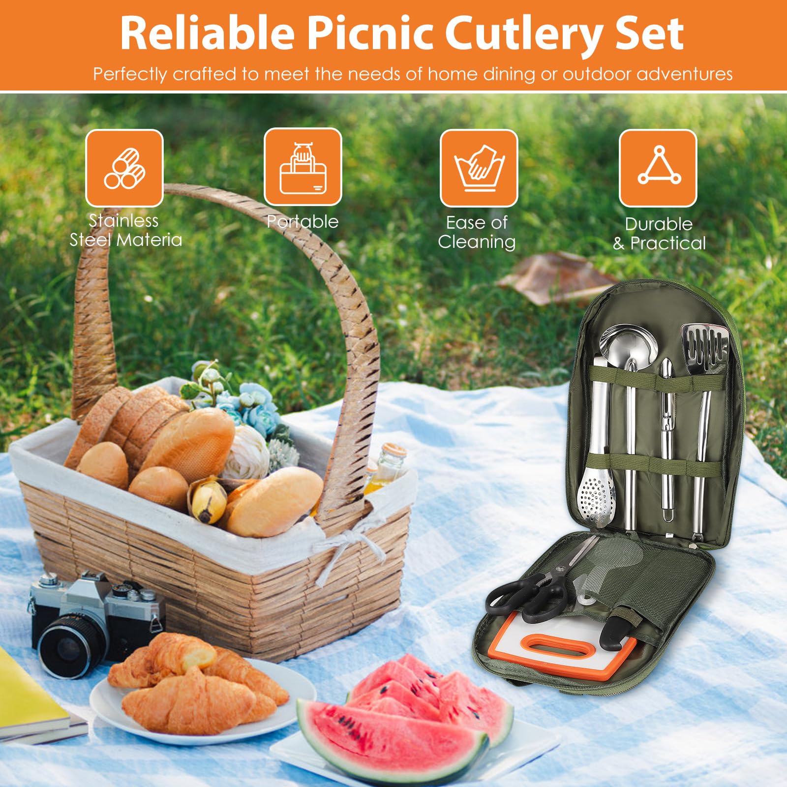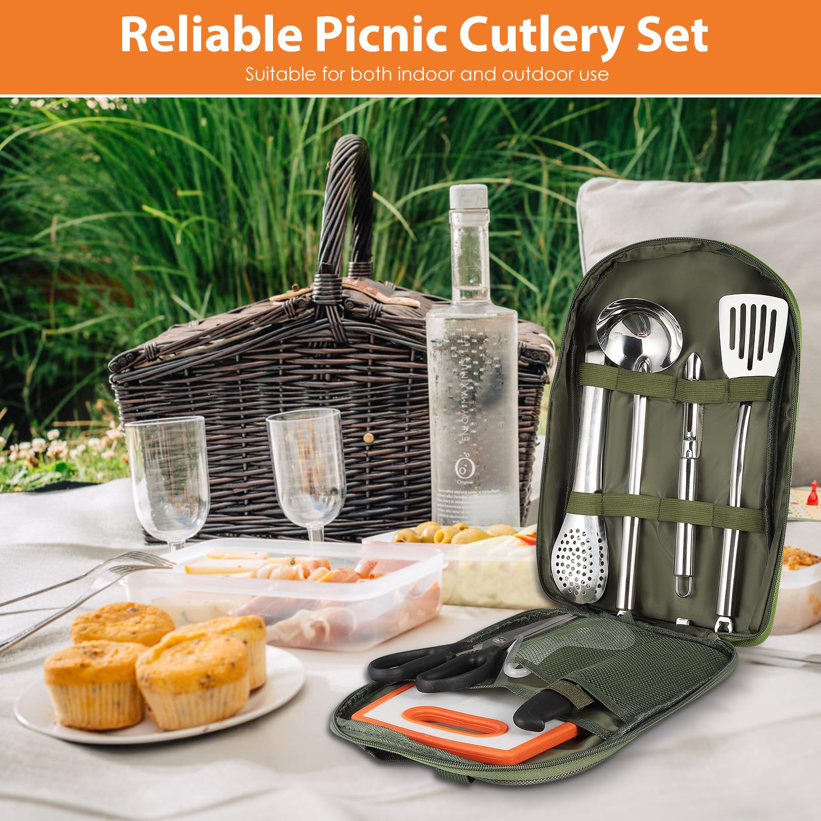 8Pcs Camping Cutlery Set,Portable Camping Cooking Utensils Set,Outdoor Camping Kitchen Utensils Organizer Kit for Travel, Picnics, RVs, BBQs, Hiking