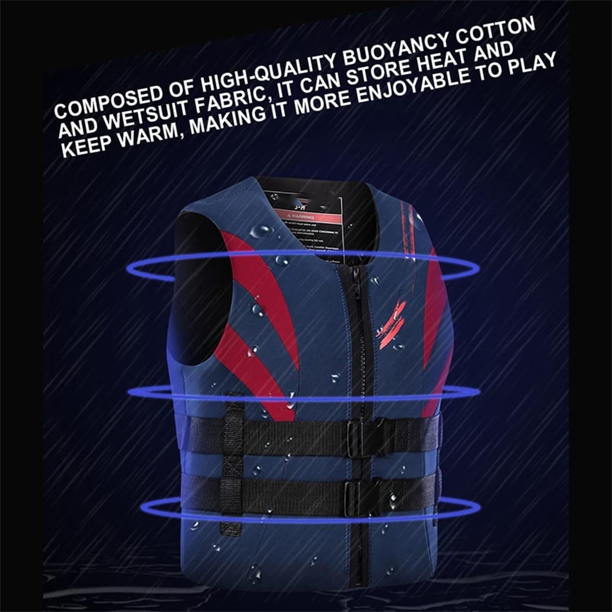 Adjustable Life Jacket for Adults, High Buoyancy PFD Vest with Safety Buckles, Quick-Dry Neoprene Aid, for Kayaking, Boating, Fishing, Watersports(black)