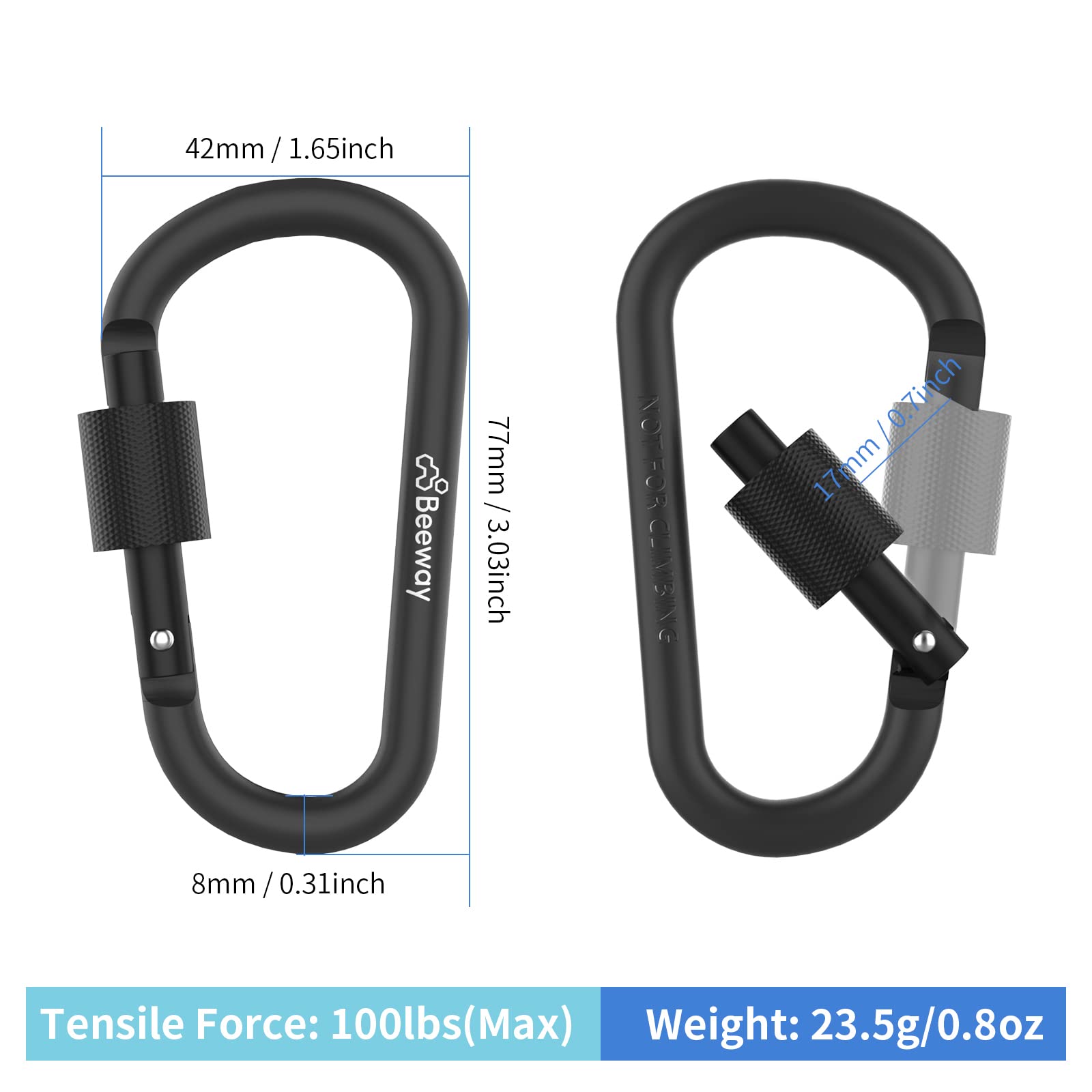 The BeeWay Aluminium Locking Carabiner Set is built for anyone who wants strength, function, and simplicity in their gear setup.