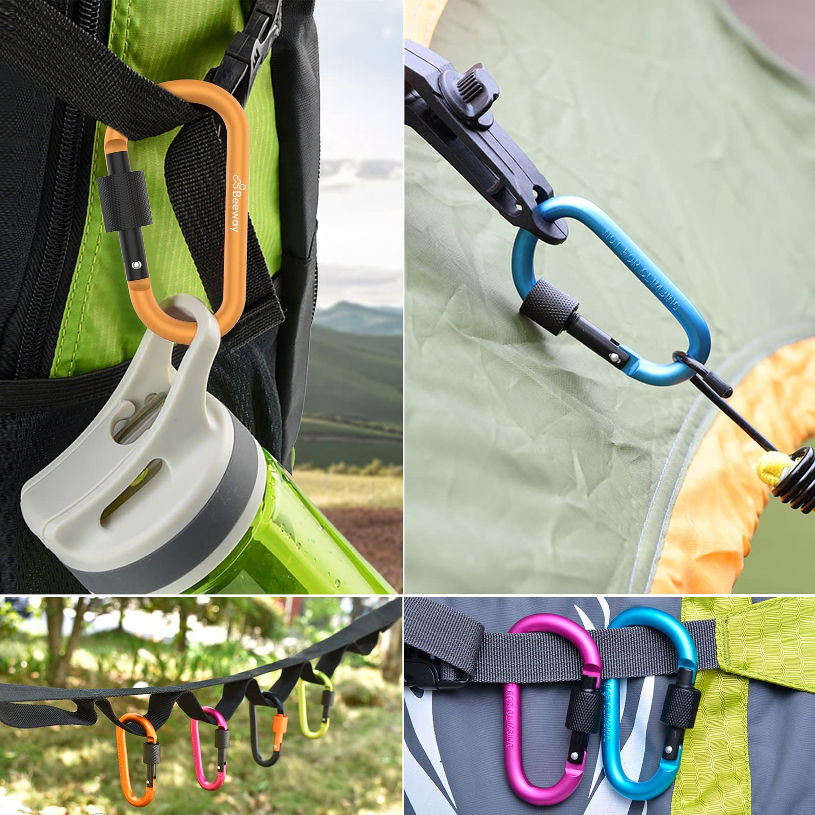 Compact, lightweight, and tough β the BeeWay Locking Carabiner Set gives you a reliable way to clip, hang, or secure your essentials outdoors or on the go. Perfect for keys, bottles, or camping gear. Not for climbing.