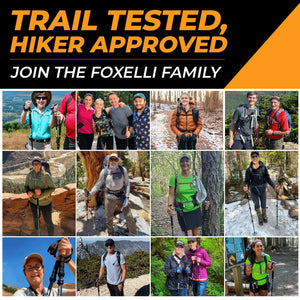 - 100% CARBON FIBER: Foxelli Walking Poles (also known as Nordic walking poles or hiking poles) are made from 100% carbon fiber material, which is known for its incredible lightness. Each pole weighs only 7.6 oz, allowing you to move quicker and faster while exerting less energy. Carbon fiber is also shock-absorbent and significantly minimizes the impact on joints. Durable and sturdy, these telescopic walking sticks are designed to withstand even the most challenging hikes or backpacking trips.