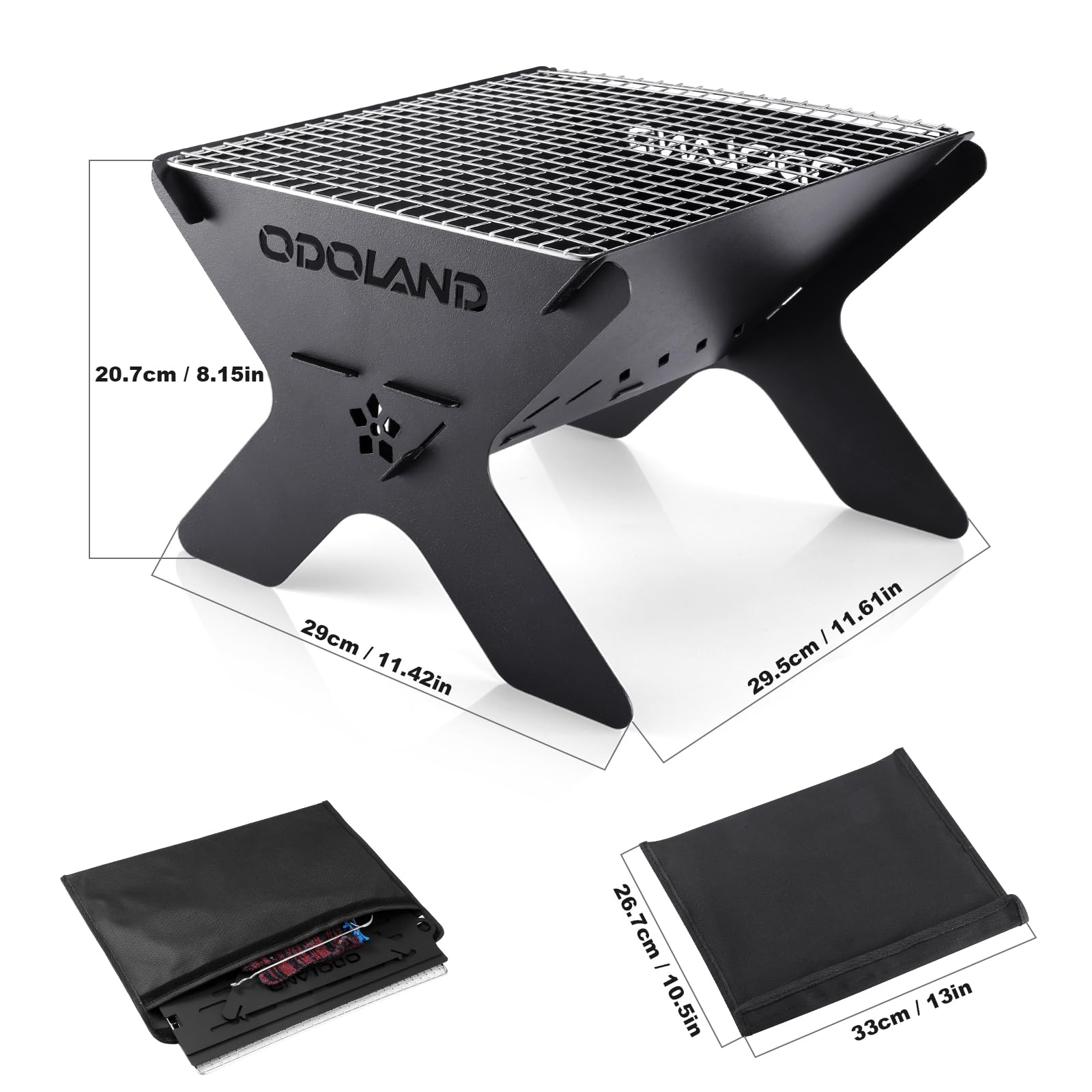 Odoland Camping Fire Pit, Portable Fire Pit for Camping, 2 in 1 Wood Burning Fire pit Grill with Detachable Cooking Grate for Outdoor BBQ, with Carry Bag