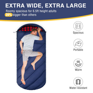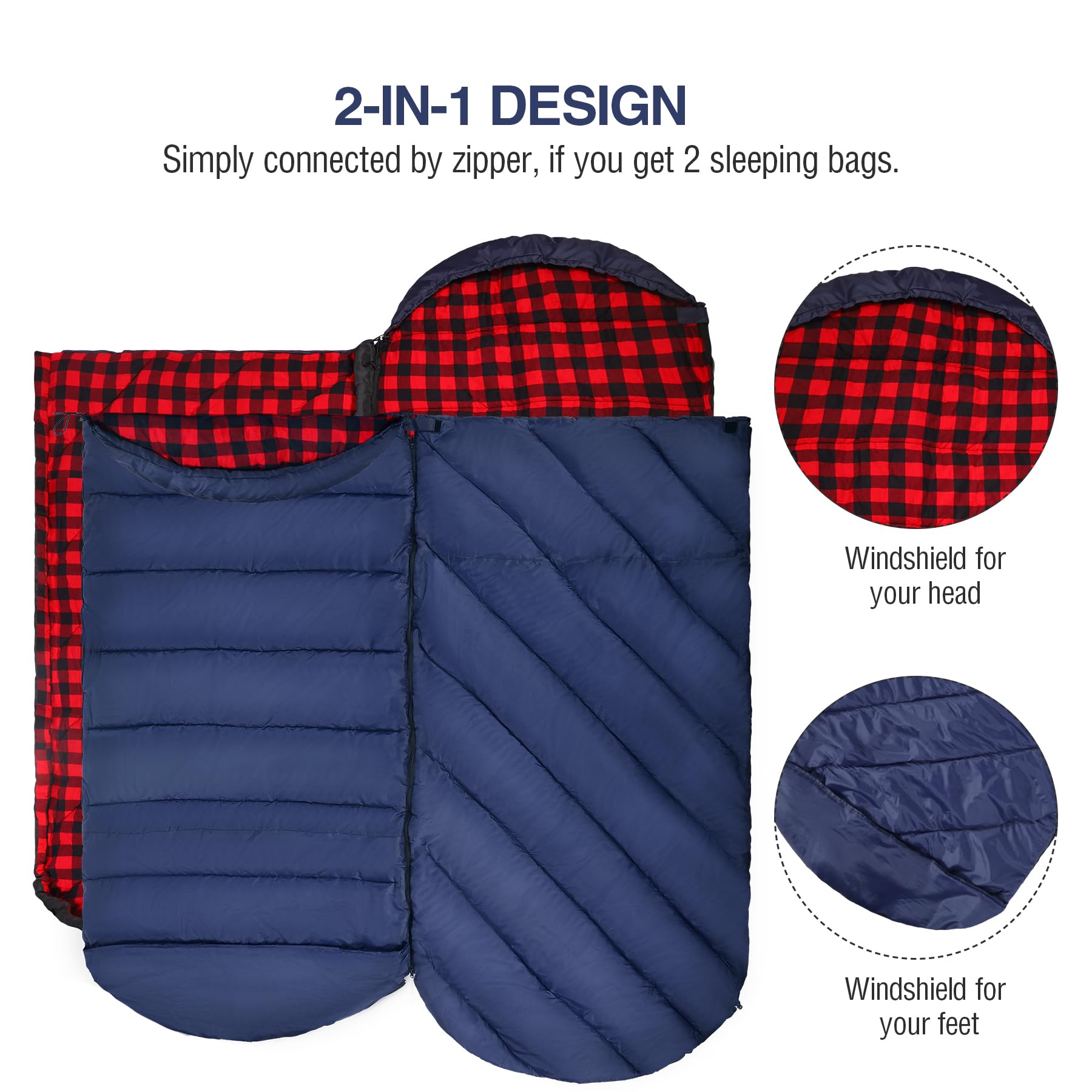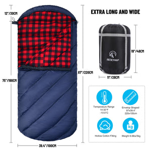 REDCAMP Extra-Wide Flannel Sleeping Bag – Red (4.4 lbs / 2 KG Filling)