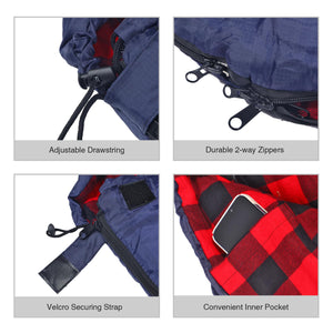 Filled with high-density insulation that provides reliable warmth even in cooler conditions. The flannel lining adds softness and breathability, making this bag suitable for spring, autumn, or mild winter camping.
