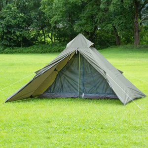 A modern take on the classic tipi — this 1-person tent offers plenty of space and style. Measuring 94.5" × 94.5" × 59.1", it’s ideal for solo campers who want comfort without bulk. Comes with a high-density mesh inner tent (86.6" × 39.4" × 53.1") for sleeping, so you’re fully equipped right out of the box.