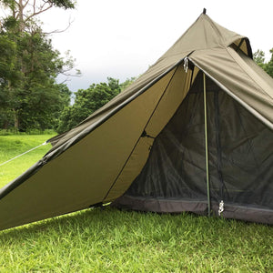 No complicated poles or fuss. Simply stake the corners, insert the centre pole, tighten the guy lines, and you’re done — usually in under 10 minutes. Designed for solo campers who want more time enjoying nature, not pitching tents.