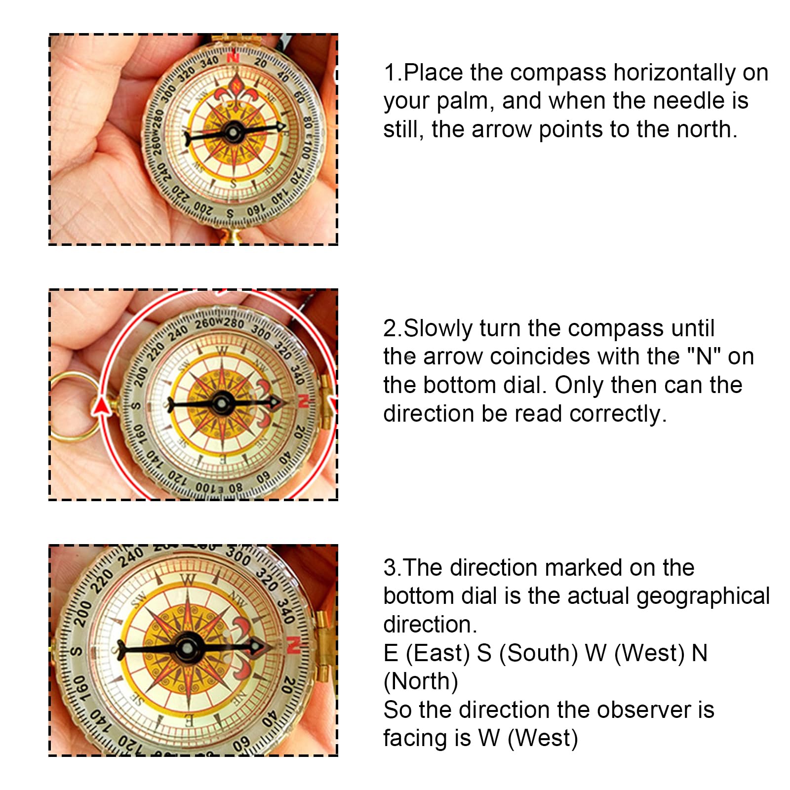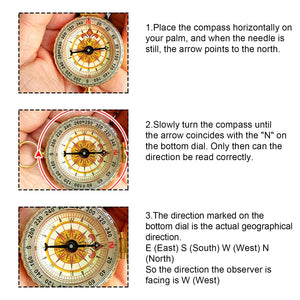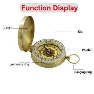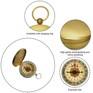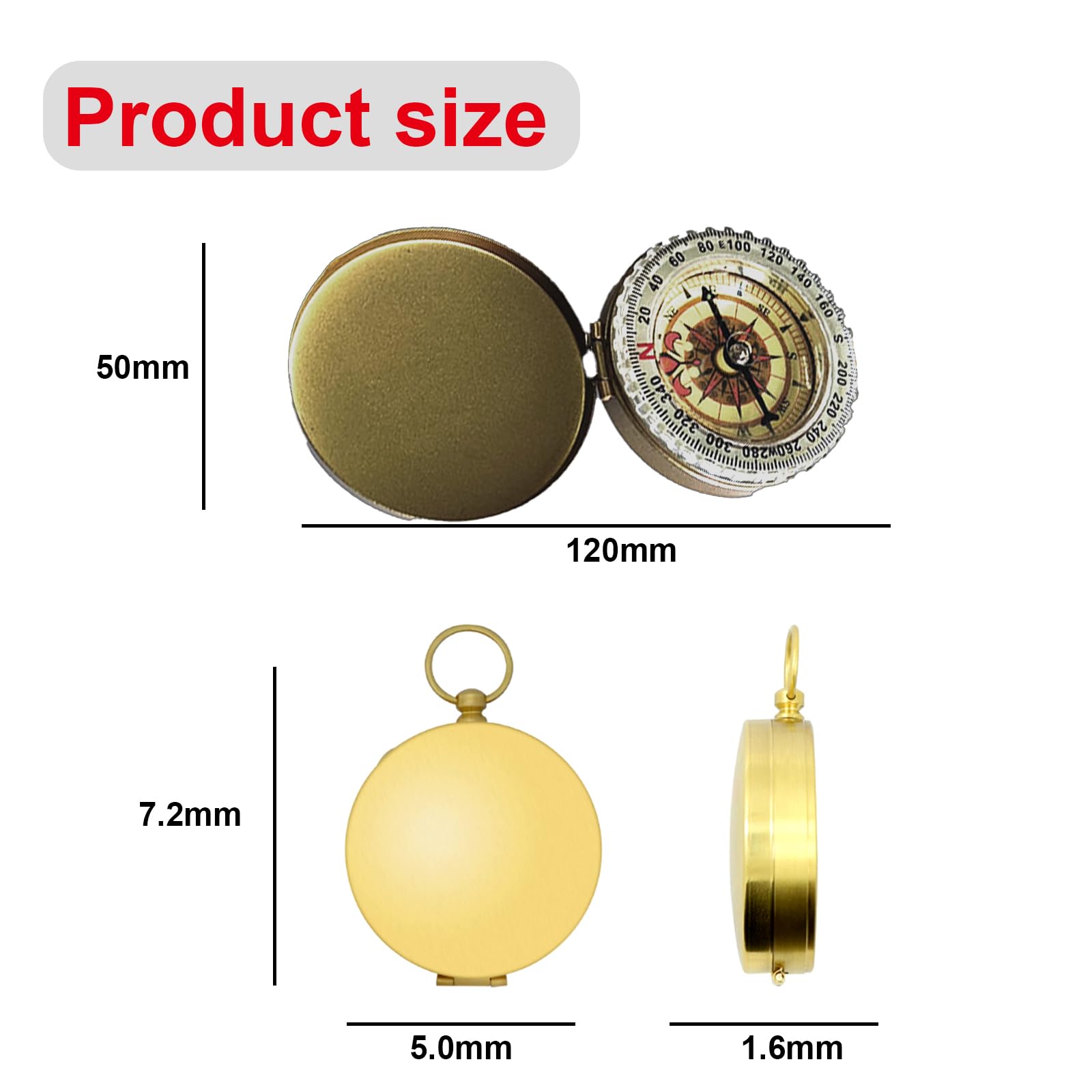VZU Gold Outdoor Compass – Waterproof Brass Retro Design with Glow Dial for Hiking & Camping